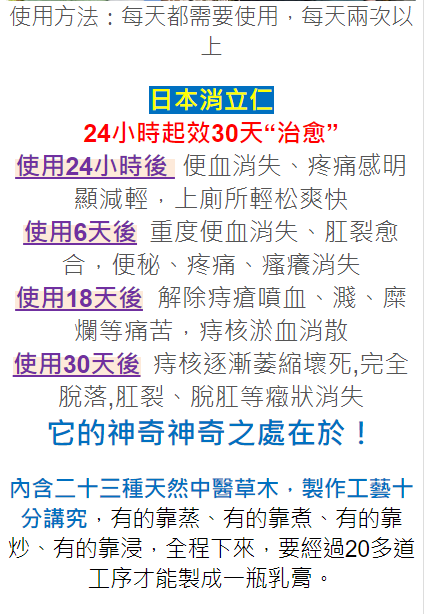 日本武田消立仁痔瘡膏是純中草藥製成的痔瘡藥膏,溫和無刺激根治內痔外痔混合痔止痛痔瘡膏,有效的緩解痔瘡疼痛以及瘙癢治療方法,具有消腫、止痛和便血的效果。